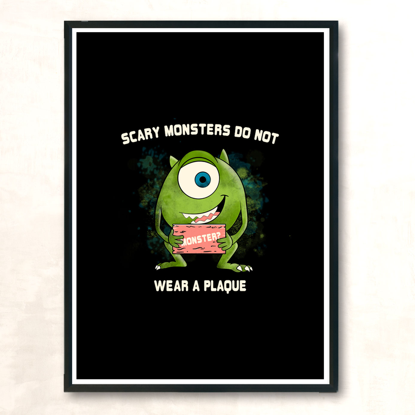 Walking Monsters Don’t Wear A Plaque Modern Poster Print have become one of the most popular forms of decorating a room today. Unlike to the past where people preferred to use paintings or paper prints for wall decoration purposes, today many people prefer to buy posters for their living rooms, bed rooms, game rooms and more. Posters have become a very cost effective and popular method.